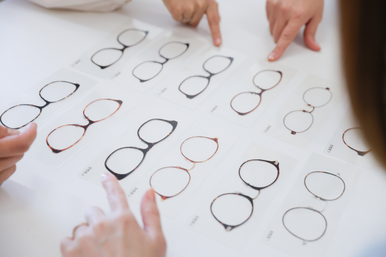 柄、アクセサリー、メガネ、髪型